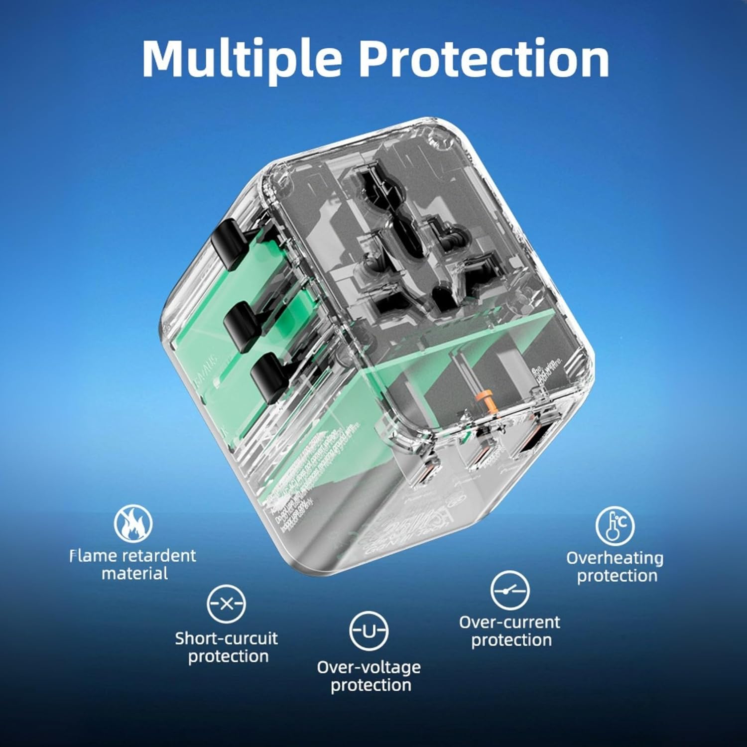 - ADVANCED SAFETY PROTECTION: Built with surge protection, smart IC technology, and a replaceable fuse, this adapter prevents overheating, overcurrent, and short circuits. It works as a dependable travel USB charger, a compact USB travel plug, a versatile travel plug adapter worldwide, and also serves as a practical UK plug adapter for safe, efficient charging wherever you go.