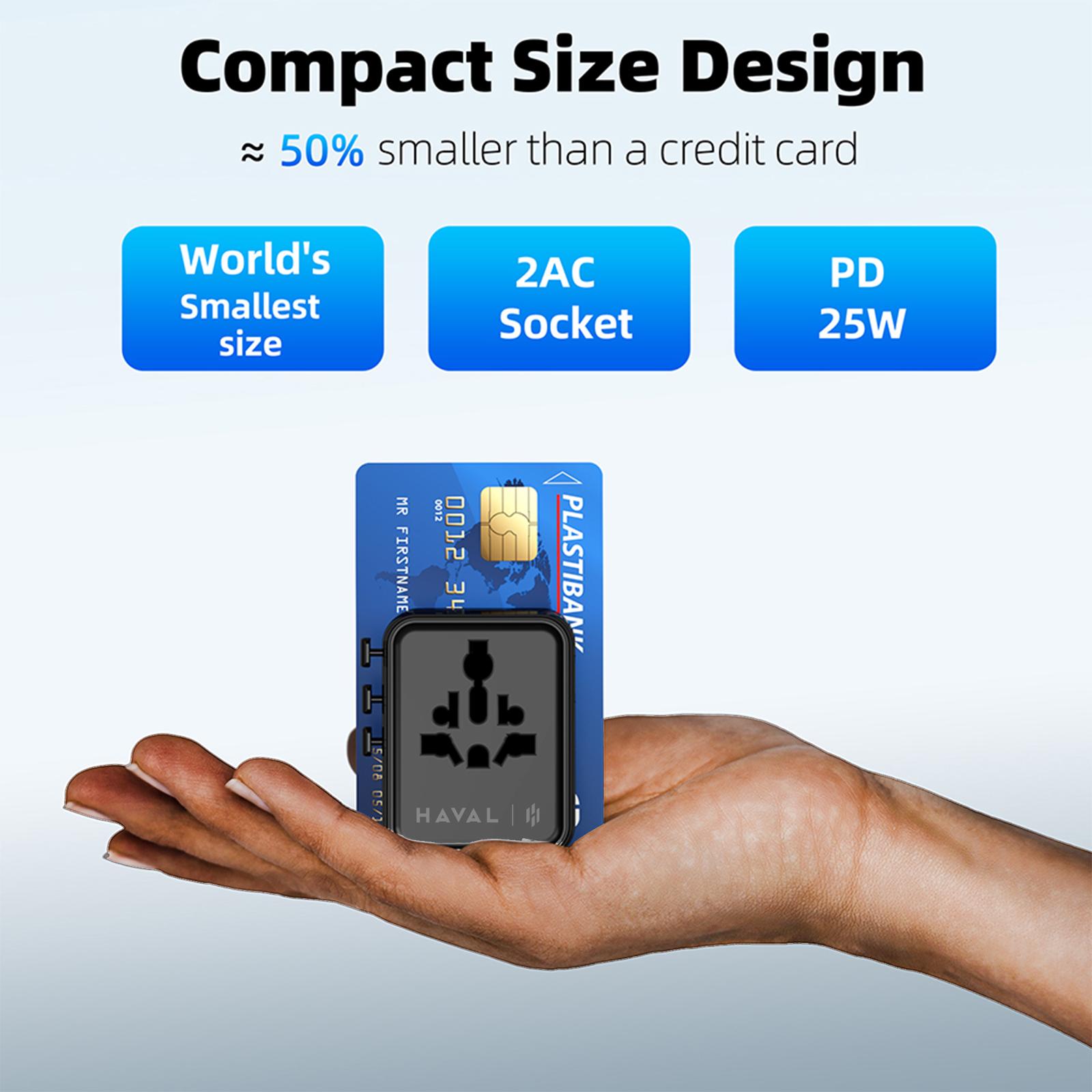 HAVAL 25W FAST CHARGER+UNIVERSAL ADAPTER ,COMES WITH 2 USB-C, 1 USB-A PORT ALL IN ONE UK,USA, EU, ASIA