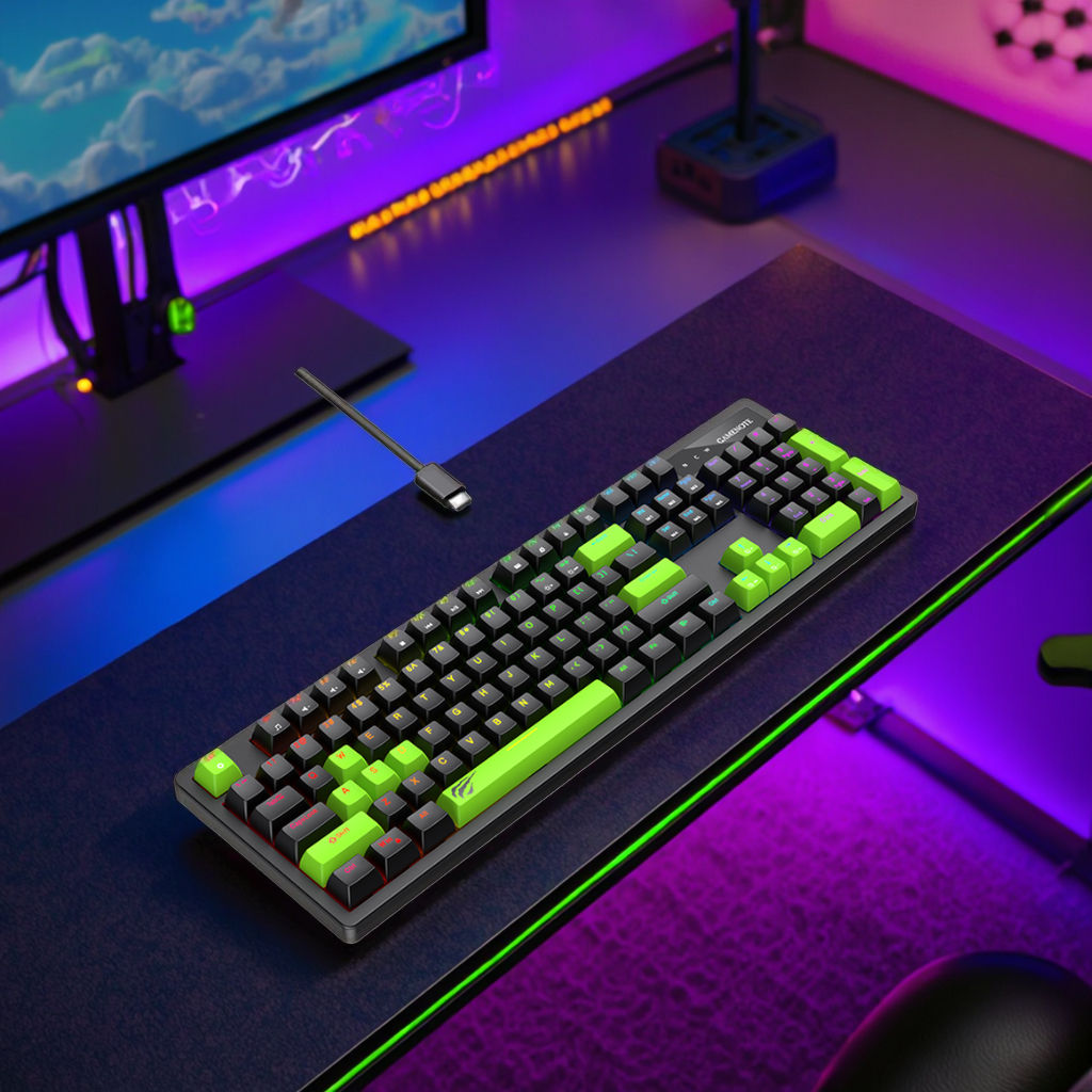 Dominate your opponents with the Havit KB893L RGB Backlit Mechanical Gaming Keyboard, built for gamers who demand precision and durability. This full-sized 104-key keyboard features professional Content Blue Mechanical Switches, offering a distinct tactile bump and audible click that ensures every command is registered with confidence.